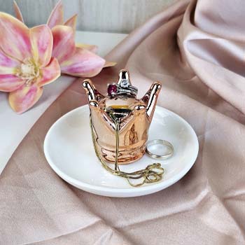 1 Pcs Crown in Plate Ceramic Ring Holder Jewellery Holder Showpiece for Home Decor.