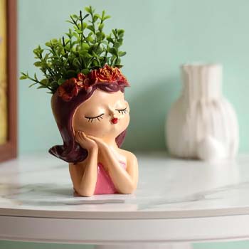 This Cute Showpiece comes as a readymade piece fixed with Faux plants as shown in the image