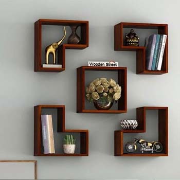 Wooden Hexagonal Shape Wall Hanging Rack Shelf Wall Shelf for Office Decoration